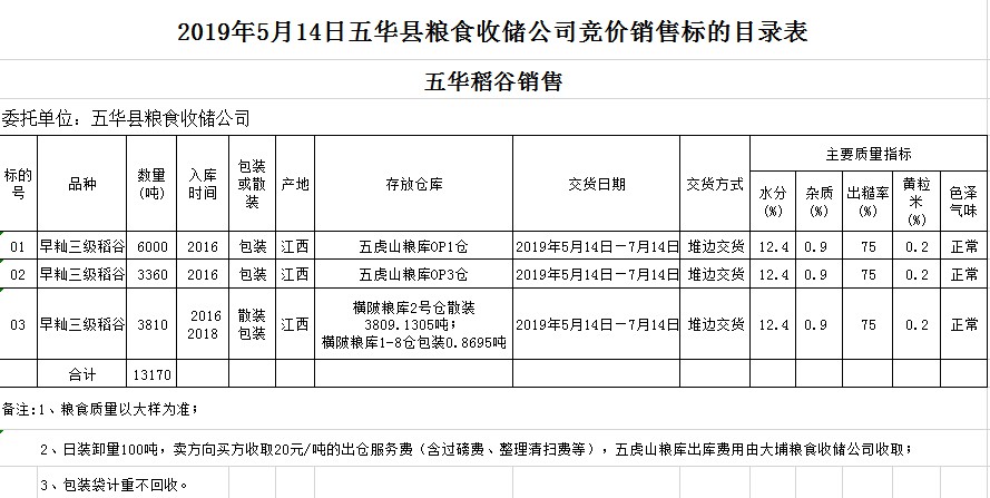 交易時(shí)間和地點(diǎn):2019年5月14日(星期二)上午10時(shí)。廣東省梅州市彬芳大道南161號梅州市糧食交易中心3樓。