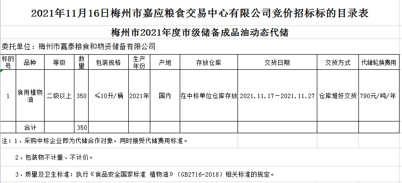 2021年11月16日梅州市嘉泰糧食和物資儲(chǔ)備有限公司競價(jià)動(dòng)態(tài)代儲(chǔ)公開招標(biāo)公告