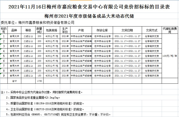 文件下載:2021年11月16日梅州市嘉泰糧食和物資儲(chǔ)備有限公司競價(jià)動(dòng)態(tài)代儲(chǔ)公開招標(biāo)公告