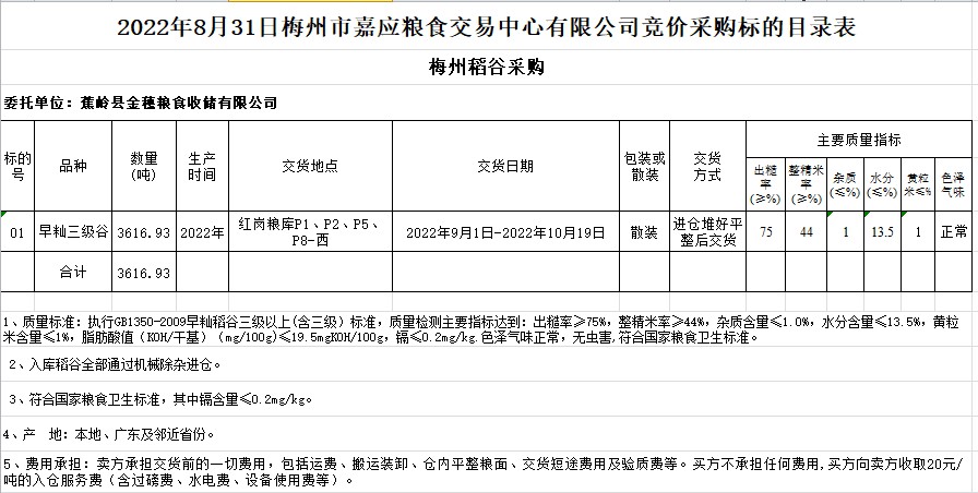文件下載:2022年8月31日蕉嶺縣金穗糧食收儲(chǔ)有限公司稻谷采購(gòu)