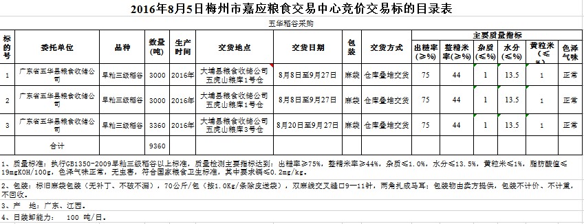 2016年8月5日廣東省五華縣糧食收儲公司稻谷采購