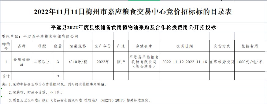 平遠(yuǎn)縣2022年度縣級(jí)儲(chǔ)備食用植物油采購(gòu)及合作輪換費(fèi)用公開(kāi)招投標(biāo)公告