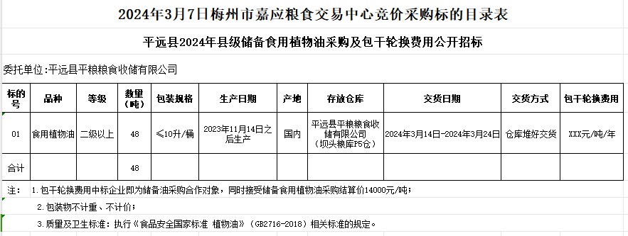 文件下載:2024年3月7日平遠縣2024年縣級儲備食用植物油采購及包干輪換費用公開招標公告