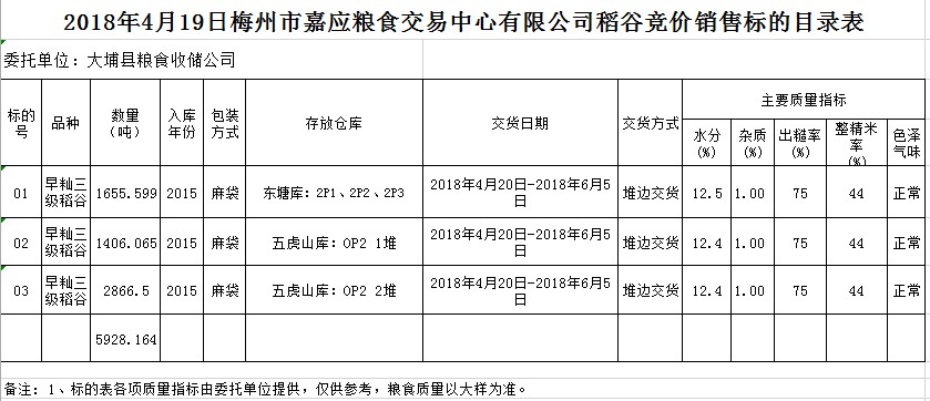 交易時間和地點:20184月19日(星期四)上午10。廣東省梅州市彬芳大道南161號梅州市糧食交易中心3樓。