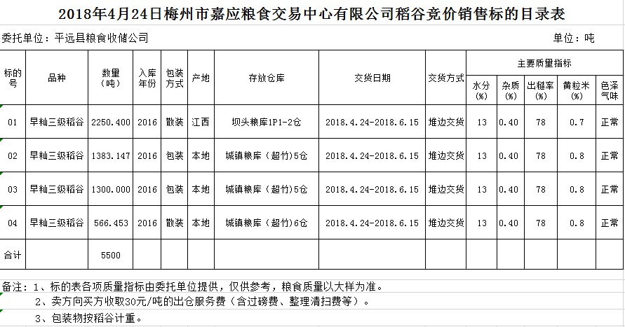 交易時間和地點:20184月24日(星期二)上午10。廣東省梅州市彬芳大道南161號梅州市糧食交易中心3樓。