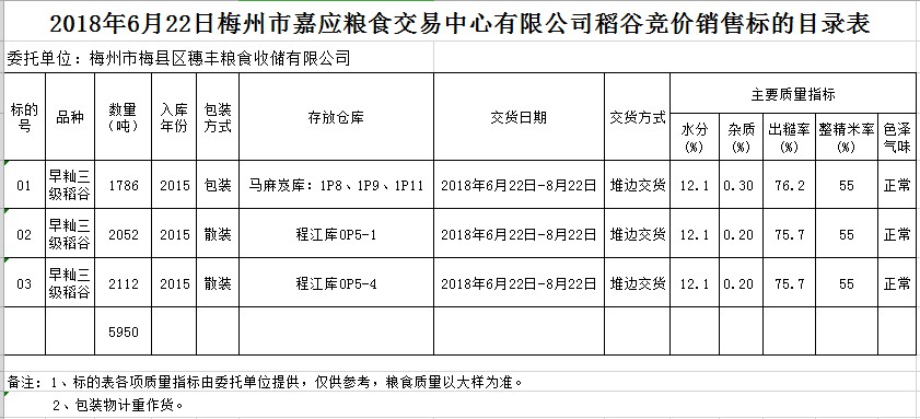 2018年6月22日梅州市梅縣區(qū)穗豐糧食收儲(chǔ)有限公司稻谷銷(xiāo)售